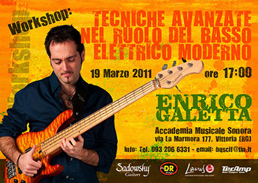 The workshop shows how to merge modern bass playing techniques as flamenco slap, double thumb,mute bass and more, in daily playing.